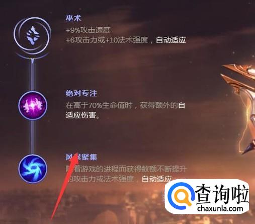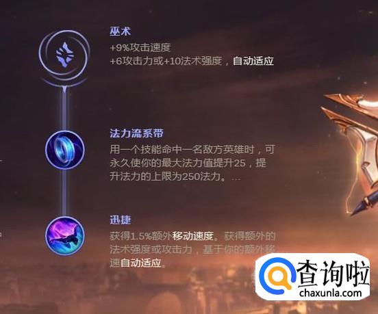在副系的选择上选择巫术的法力流系带以及迅捷,增加自己的蓝量以及移动速度。