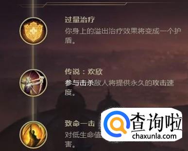 剩下的选择过量治疗以及欢欢以及致命一击,为其通过一定的回血能力和攻速以及伤害能力