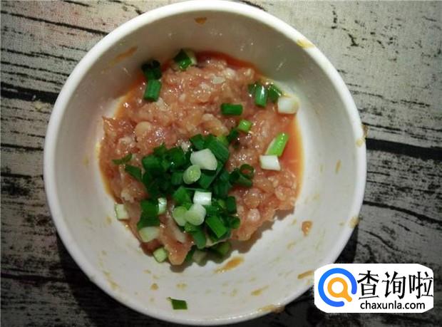 瘦肉是已经剁好的,放入适量的盐和酱油,再加入少量的葱末,搅拌均匀。