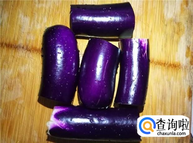 茄子清洗干净,切掉头尾两端,然后先切段,再切丝。