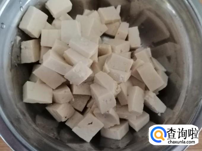 把一根胡萝卜,用清水洗净,切成胡萝卜丁待用,适量芹菜、木耳洗净切好待用,豆腐切成小块待用。