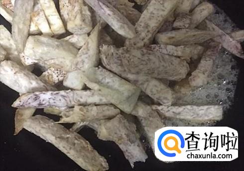 先将芋头切条,然后烧热锅,下油,等油热后放入芋头。待颜色变成奶黄色起锅,当然,一定要确认芋头是否已熟(没熟的芋头不要吃哦,容易中毒)