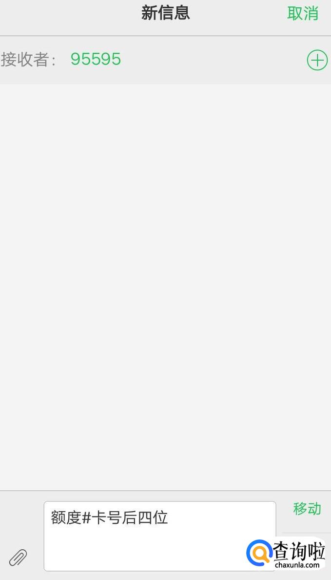 然后在接收者处输入“95595”,在编辑处输入“额度#卡号后四位”