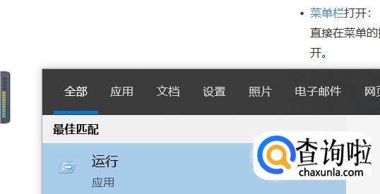 在搜索栏中输入“运行”并打开。