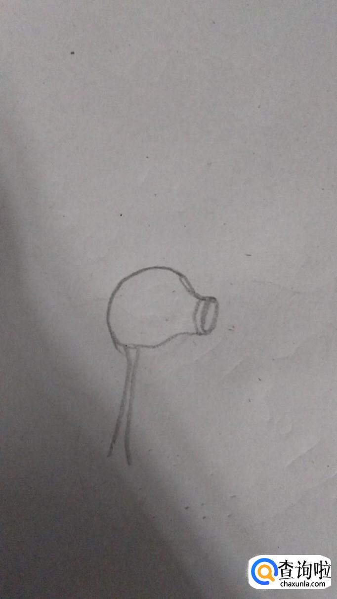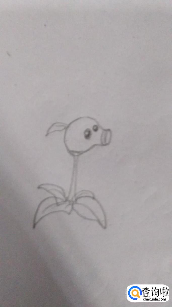 首先画一个豌豆射手的头部和嘴巴,像一个放倒的电灯泡一样。