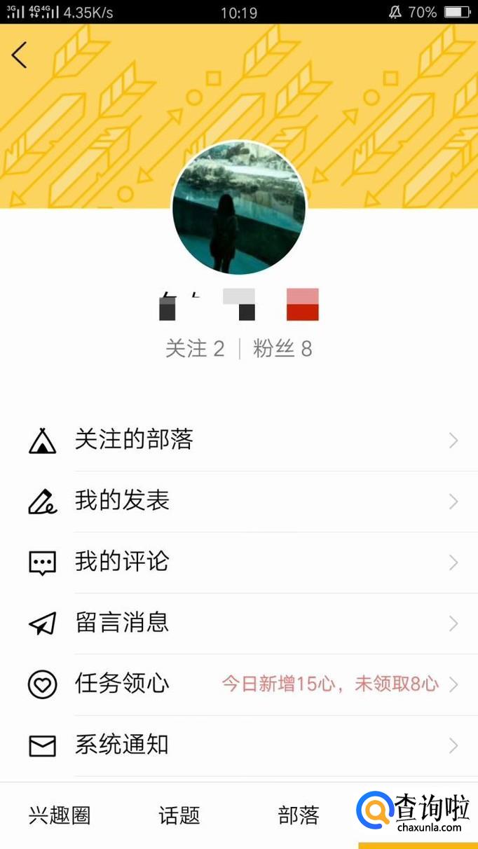 进入群兴趣部落界面之后,点击右下角的“我的”,进入个人主页。