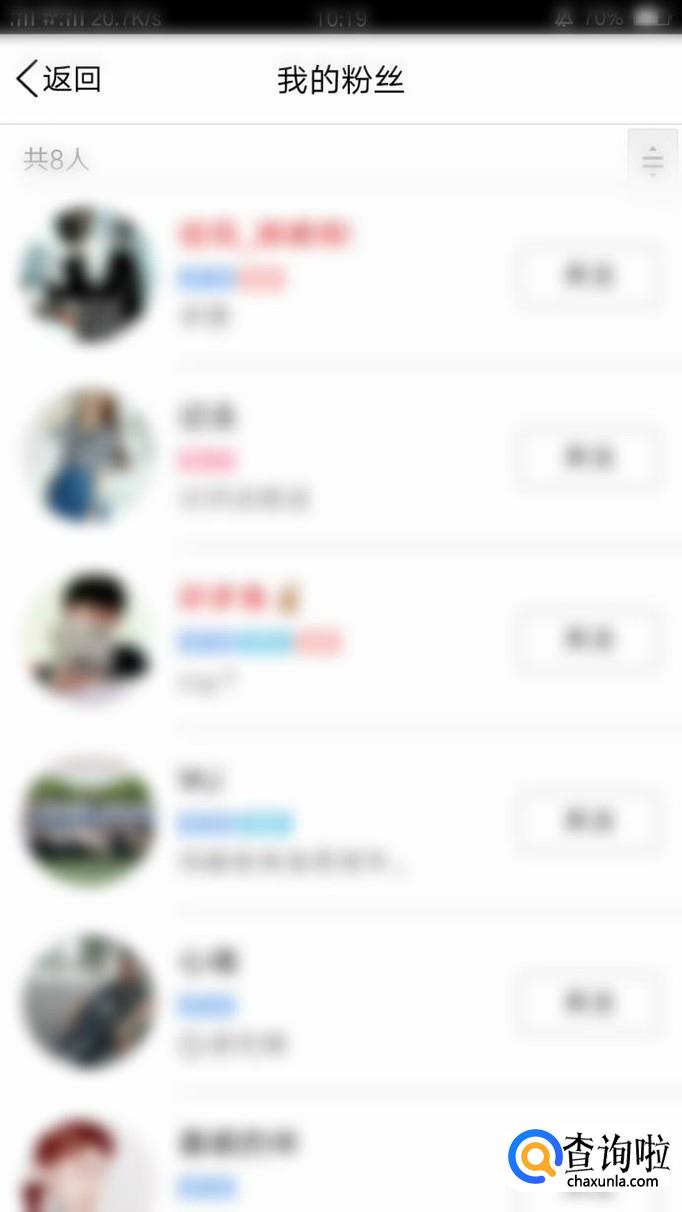 点击“粉丝”,就可以具体的知道是哪些人关注了你,你可以看看自己粉丝的主页哦!