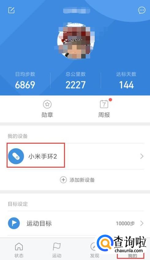 点击底部“我的”,在“我的设备”中找到绑定的小米手环2。