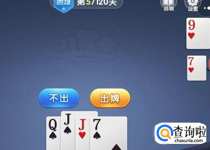 对方出大王后,再出一张7,这时我们可以出J,或出Q都行,最后剩下J,Q,7。由于对方剩一张9,我们先出J,Q,最后才出7就能赢了。