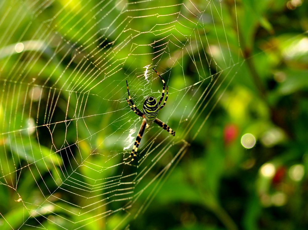 几乎所有的蜘蛛都用它作为指路线、安全绳、滑翔索。有的蜘蛛则吐丝织网。蜘蛛种类不同,网型大小、形状、网眼疏密、纬丝密度等也各有差异。蜘蛛织网都有一个规律性操作步骤,先搭框架和脚手架,再牵上等分的辐射丝,然后精确、敏捷地从外圈盘旋到内圈。圈与圈之间距离相等,通常仅几分钟一个大网便告织成。蜘蛛织网是其祖先遗传的习性。洞穴的游猎蛛便不会织网,行动时后端拖一根细丝四处游走扑食;蛛网远不止是蜘蛛的菜篮子,对于蜘蛛来说,由于它几乎是全瞎,蜘网便是它各种感觉器官的延伸部份,凭纤细的蜘丝振动所传递的信息,蜘蛛就能一目了然地确定投网者的位置、个体大小。同时蜘蛛网还是蜘蛛的住宅兼庇护所,也是它的婚床兼育儿室。