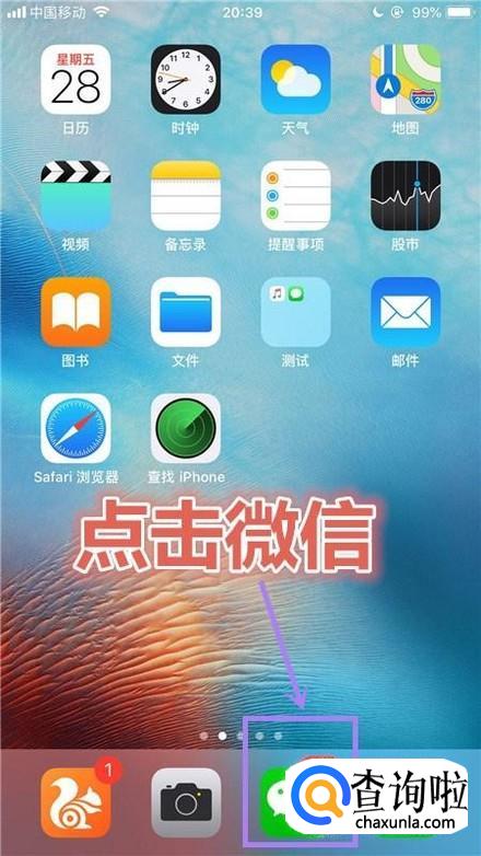 首先在我们的手机桌面上找到微信并点击它,如下图所示。