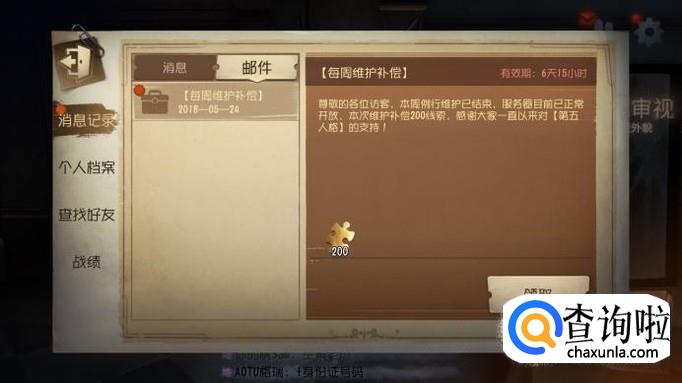 还有一个不用费功夫就能获得的方法,就是每次游戏更新后,每个玩家登陆游戏,便能收到200个线索点。