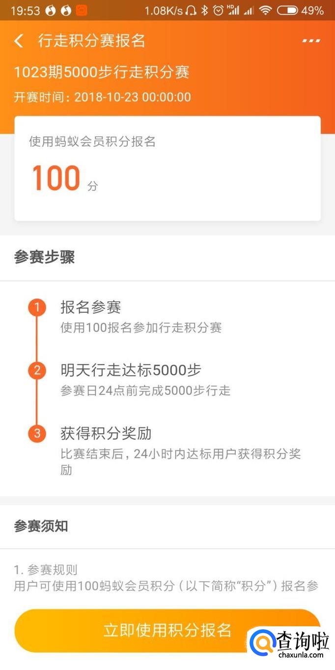 参与以后就可以进入这个页面查看参与规则,然后选择使用100积分参与活动。