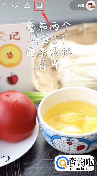 在短视频播放界面的顶部有一个【转发】按钮,点击这个转发按钮。