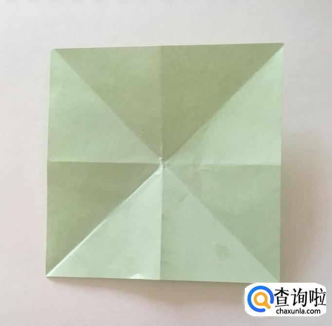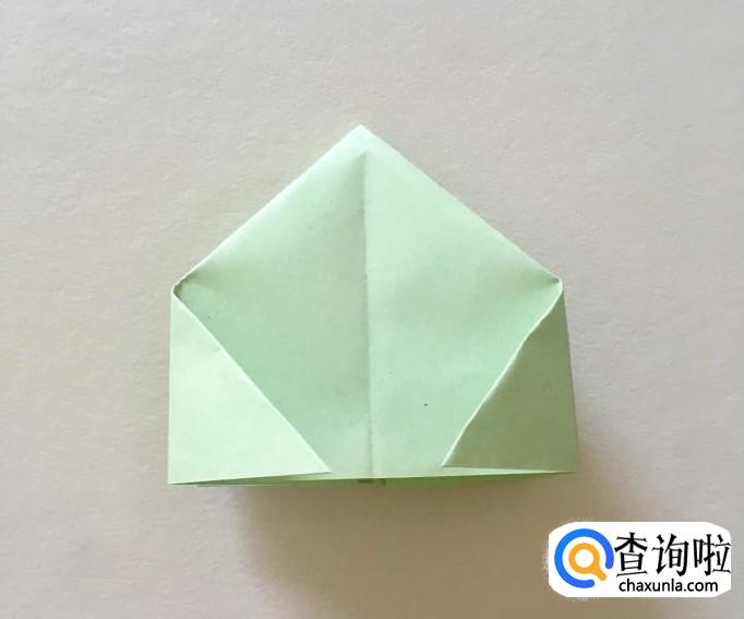 如下图,将三角形两侧的角向中间折,另一面的角也向中间折,折出一个五边形。