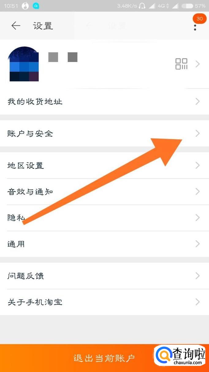 点击在个人资料下面的“账户与安全”。