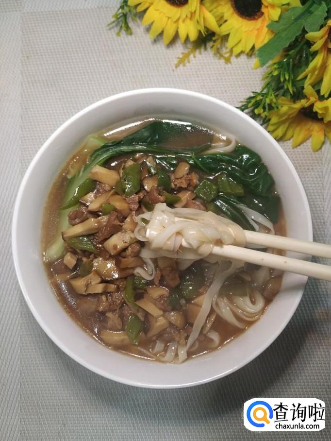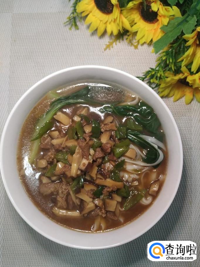 面条适量,青菜适量,牛肉适量,青椒适量,香菇适量,生姜适量,老抽适量,盐适量,鸡精适量,五香粉适量,料酒适量。