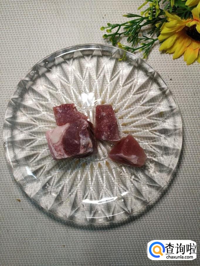 准备适量新鲜的牛肉,洗净后切碎放入盘中,再准备适量青椒切碎,放在上面,再加适量盐,鸡精,五香粉,料酒,搅拌均匀,腌制15分钟。