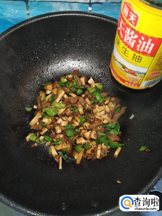 炒锅中放入适量油,油热后,将牛肉放入锅中炒香,切碎的牛肉是非常容易熟的。