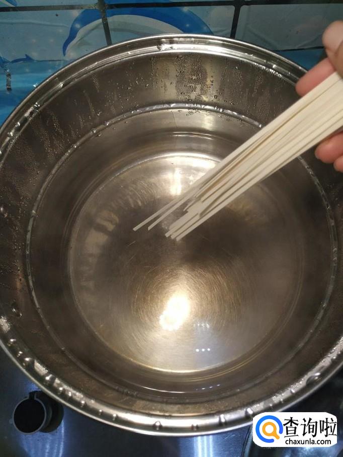 汤锅中放入适量清水,大火将水烧开,然后准备适量青菜洗净,和面条一起放入锅中,煮熟捞出,放入碗中备用。