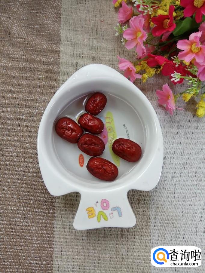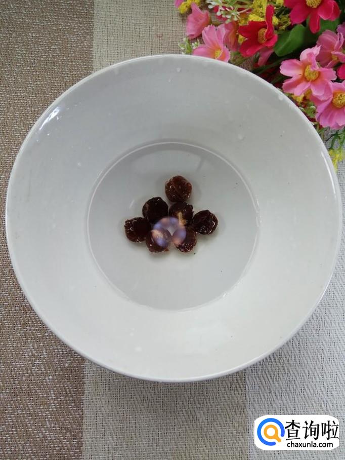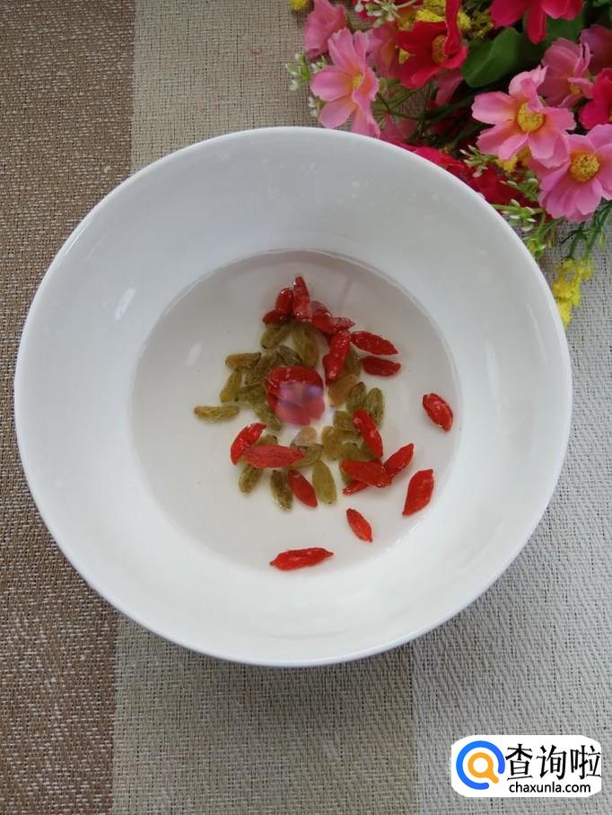 再准备适量大枣,枸杞子,葡萄干,用清水泡半个小时左右。