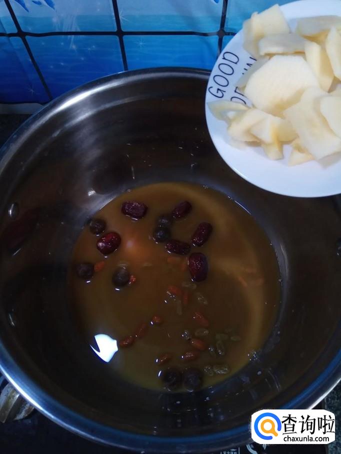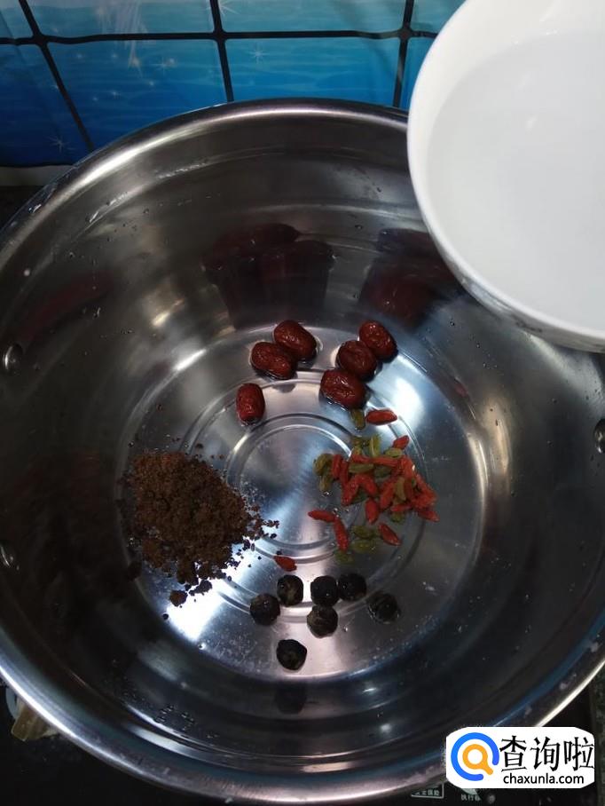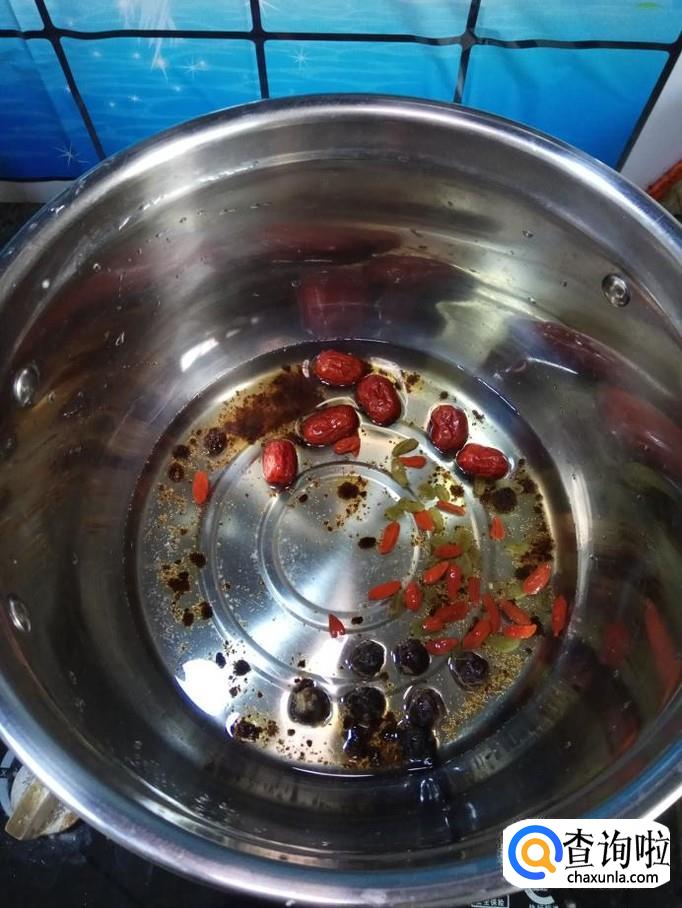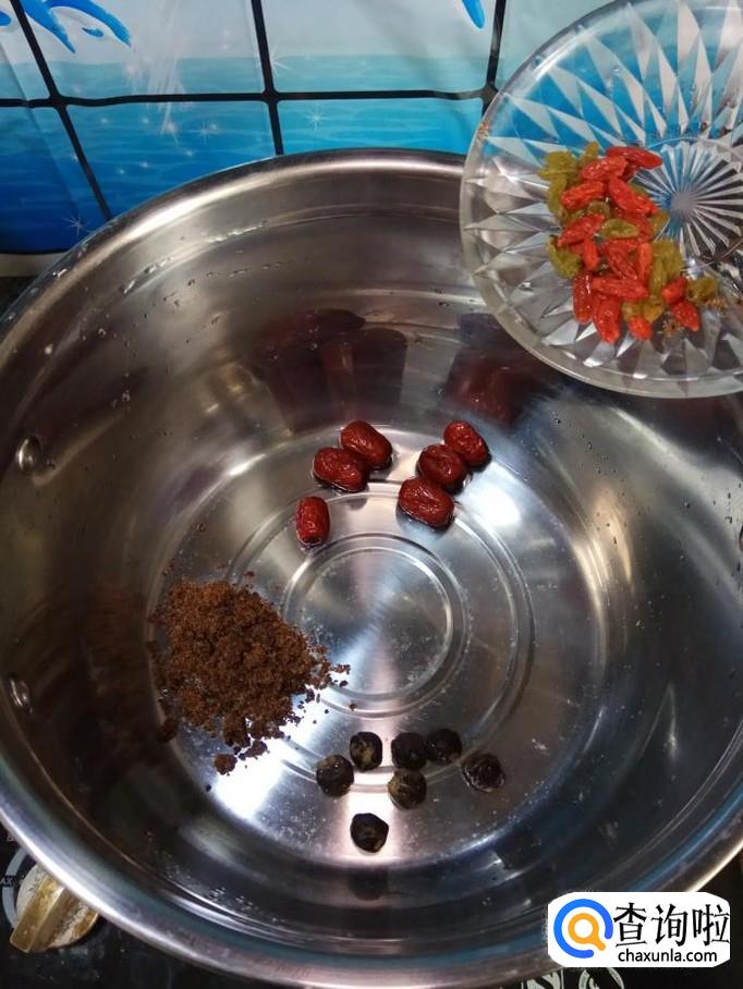 再加入适量红糖,枸杞子和葡萄干,这三者也有温补的功效。