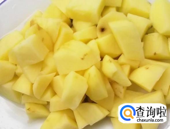 首先我们需要把土豆削皮然后用清水清洗干净,然后把土豆切成土豆块,土豆块的形状不宜过小。