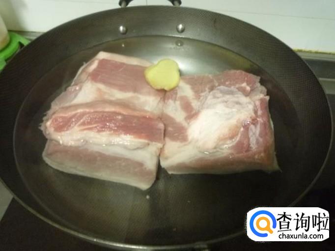 接下来我们需要把五花肉用清水清洗干净然后放入锅里面焯水,为了去除腥味我们可以加入一些料酒或者姜片。