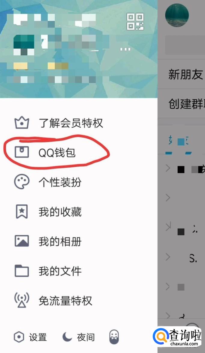 再点击左方的QQ钱包。