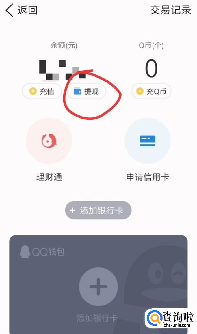 之后点击余额下方的提现。