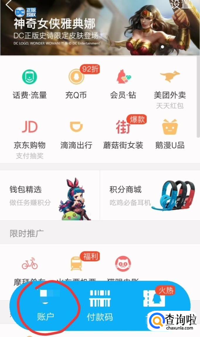 进入QQ钱包后点击左下角的账户。