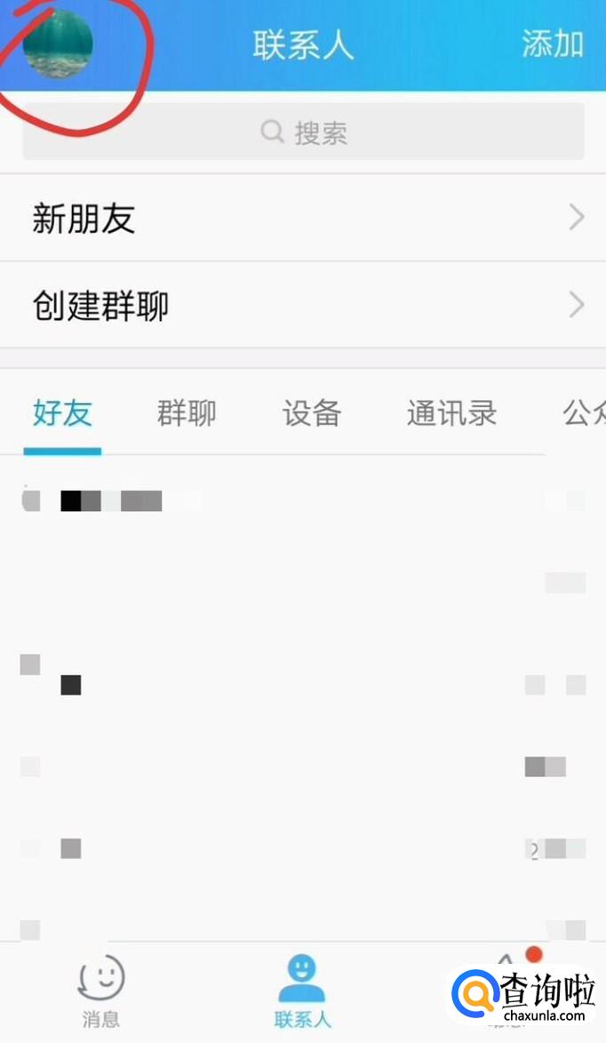 接着在QQ页面点击左上方自己的头像。