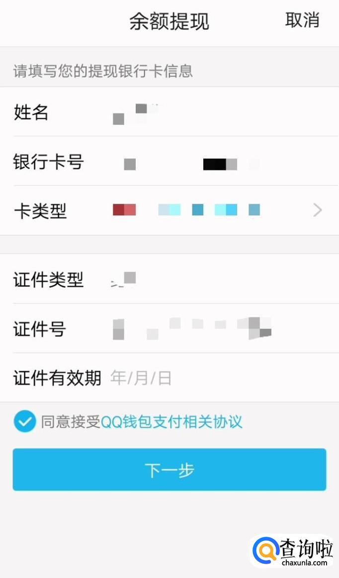 如果QQ未绑定银行卡,则需填写银行卡身份证号及一系列信息,以确保提现的安全性和准确度,最后填写好手机验证码,即可绑定成功,紧接着就可提现啦!可以是全部提现,也可以自己输入不超过余额的金额。