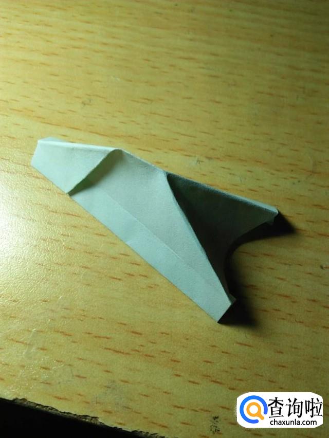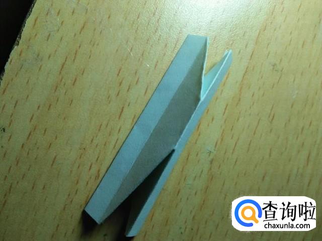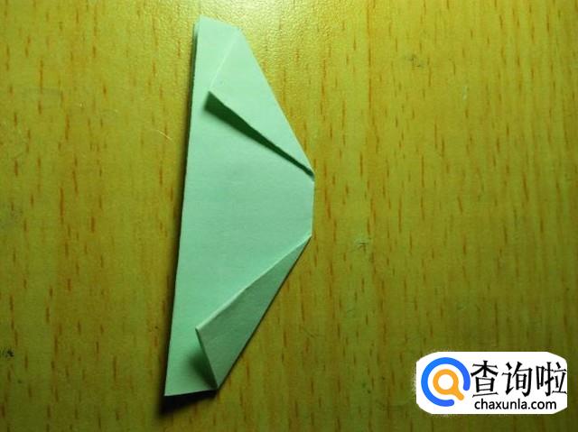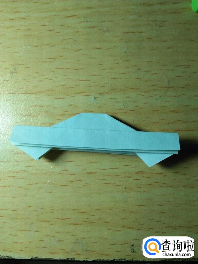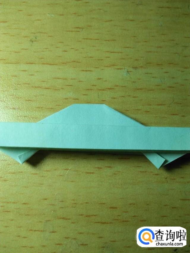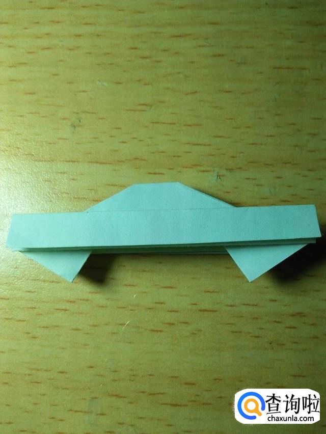 宽一点的长方形,两边往下折,折成两个小三角形。