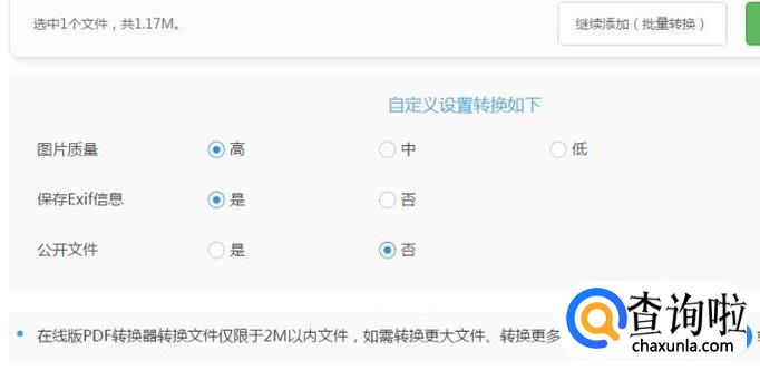 文件添加并打开后可以在页面的“自定义设置转换如下”对转换文件的质量,保存信息进行设置