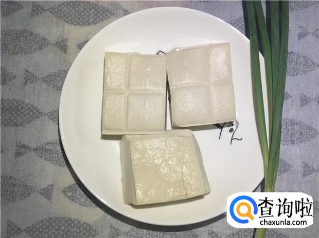 先准备好食材,新鲜的嫩豆腐3块,小葱一根。