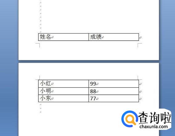然后新建一个横跨两页的表格,如下图所示。