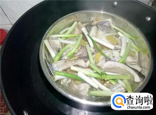 然后锅里先烧水,水烧开后放入腌制好的鱼腩。