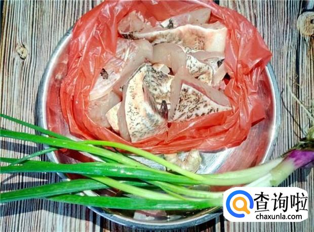 准备好所有材料:鱼腩两条、姜适量、香葱两根。