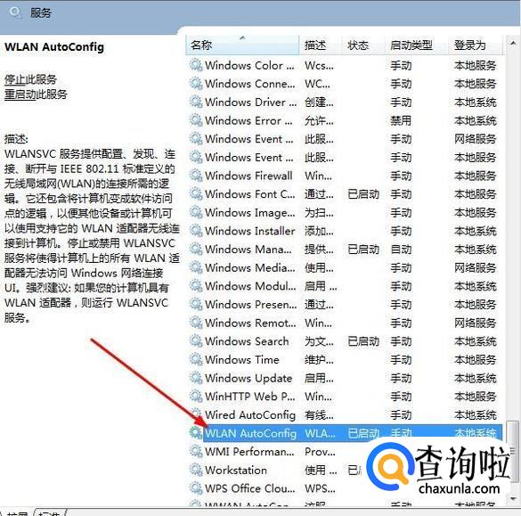 我们在右边的服务列表里面找到“WLAN AutoConfig”后双击进入。