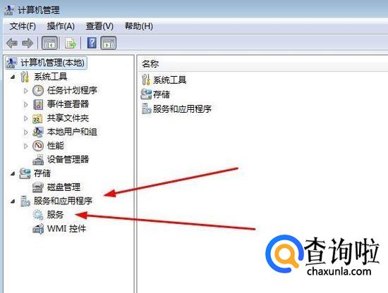 进入计算机管理之后我们点击“服务和设备管理”栏目,选择“服务”。