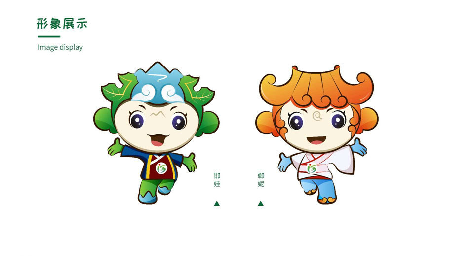 河北省第四届园林博览会吉祥物分别为“邯娃”和“郸妮”。“邯娃”和“郸妮”,形象颜色以蓝色、绿色和红色为主基调,其造型、头饰、祥云纹、波浪纹、叶脉纹融合了赵文化、丛台、磁州窑等地域特色文化元素,遵循了“生态、共享、创新、精彩”原则,突出了“山水邯郸·绿色复兴”主题,充分体现了我市坚定不移践行生态文明、绿色发展的理念。