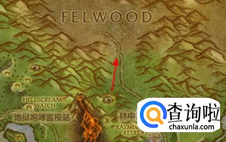 在灰谷里面要从灰谷的上方的路进入费伍德森林。箭头指的地方。