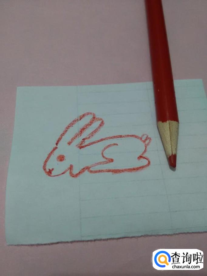 最后,用红笔在头上画一个红点,表示眼睛,在眼睛下面画一个X,表示嘴,小兔子就画完了。