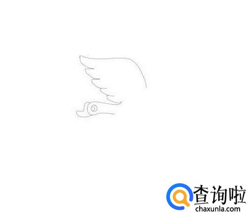 再在大雁的头部后面画出大雁的一只翅膀,如图所示: