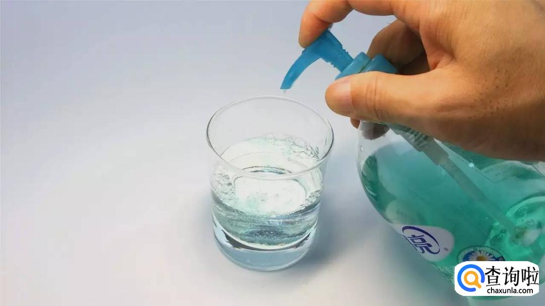 往水杯中倒入洗洁精15ml。