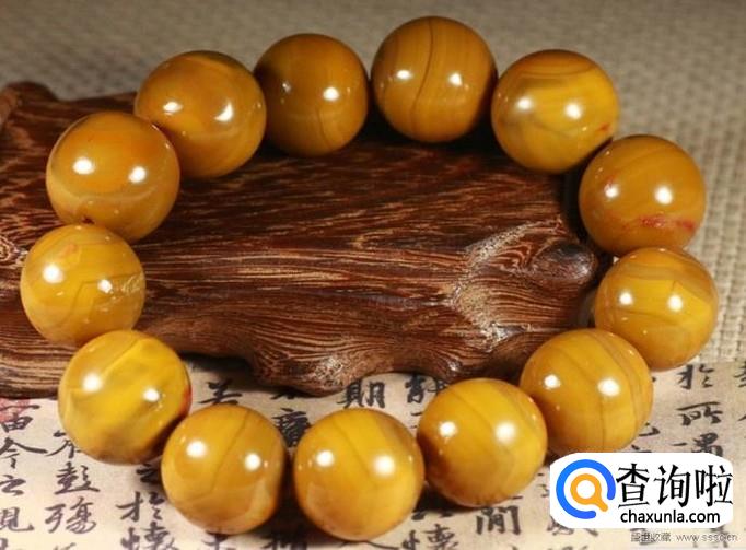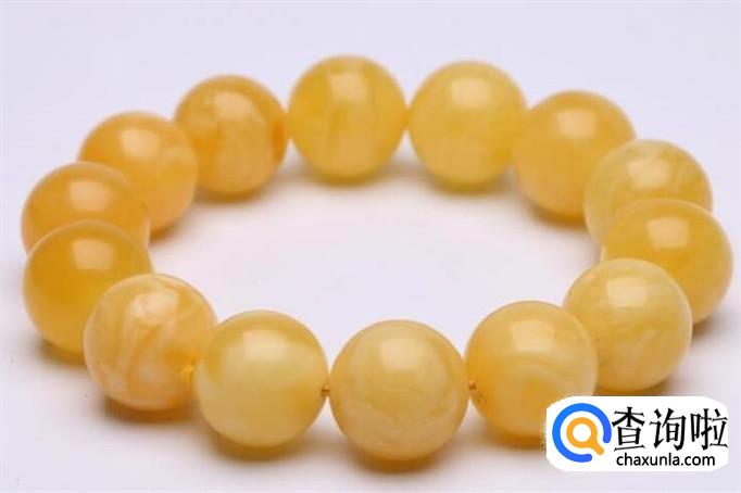 鸡油黄蜜蜡手串:由于他的颜色类似于鸡油的颜色,而且它的颜色特别均匀,所以被称之为鸡油黄蜜蜡手串,这类手串在蜜蜡手串当中是价格比较高的一类,他的平均价格在300~400左右,并且珠串的直径越大,价格也越贵