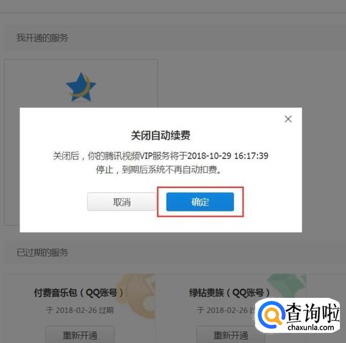 最后,在弹出的确认对话框中,点击“确定”按钮即可关闭当前已经办理的增值业务。