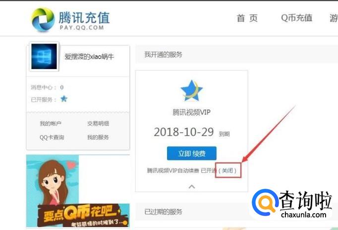 接下来,可以看到当前已经开通的增值业务,点击“关闭”按钮。