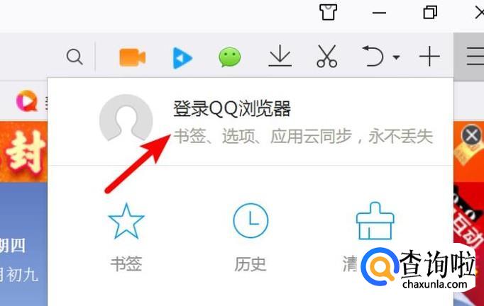 要点亮QQ浏览器图标,我们需要在QQ浏览器上登陆该QQ。